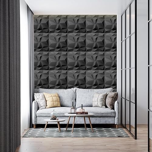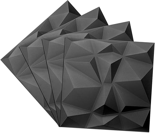 Deccart - 3D Wandpaneele Styropor Wandverkleidung Decke Deckenverkleidung Paneele Deckenplatten Wall Deko Panel Wand Panels Polystyrol 50x50 cm Diamant 2 m², 8 Stück, Schwarz