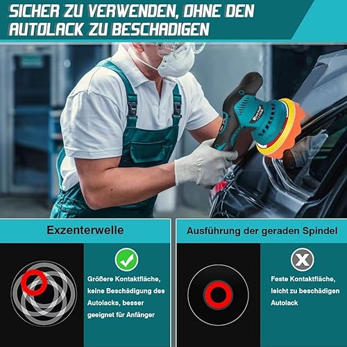 Akku Poliermaschine Set, Exzenter Poliermaschine mit 2 Batterien, Auto Poliermaschine Set 22pcs, Kabellos Akku Auto Poliermaschine,8 Variable Geschwindigkeiten Akku Wachsmaschine für die Autodetailing