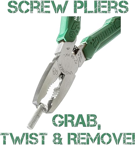 Kombizange mit vertikalen Rillen zum schnellen Lösen beschädigter Schrauben (Grüne Griffe). Japanische Herstellung. ENGINEER PZ-58