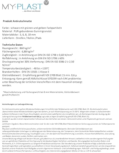 My Plast Antirutschmatte zur Ladungssicherung (2 Meter x 50 mm x 10 mm) auch in 6mm, 8mm, 10mm, Bautenschutz Matte, Terrassenpad Rolle für Terrassenbau, Waschmaschinen Unterlage, Gummiunterlage