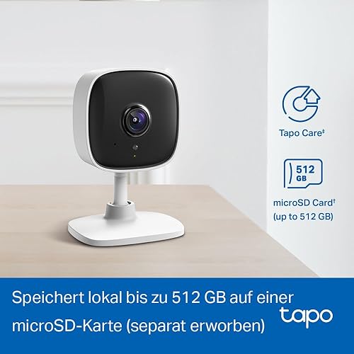 TP-Link Tapo C110 WLAN IP Kamera Überwachungskamera (3MP-Auflösung, 2-Wege-Audio, Bewegungserkennung, Ton- und Lichtalarm, Nachtsicht zu 9m, bis zu 256 GB lokaler Speicher auf SD Karte) Weiß
