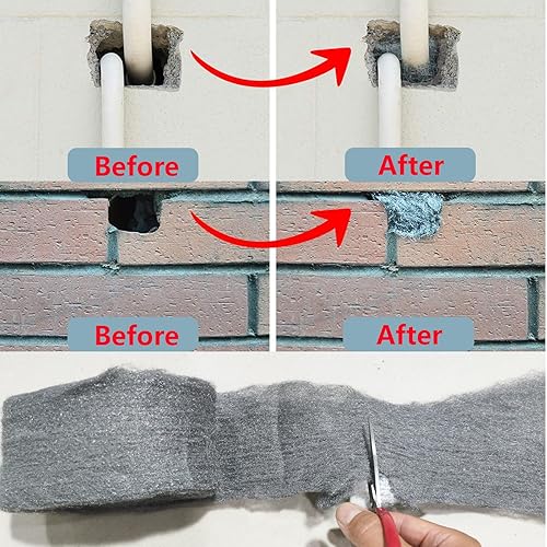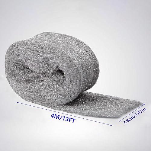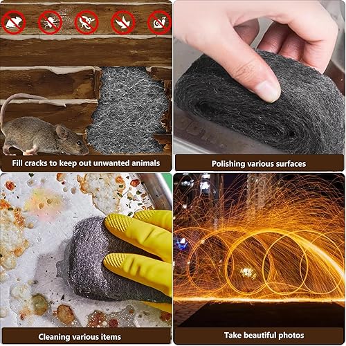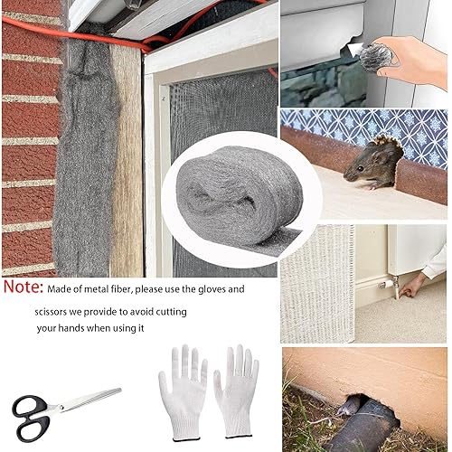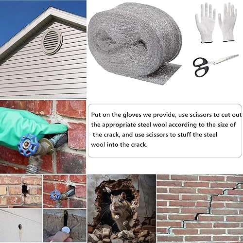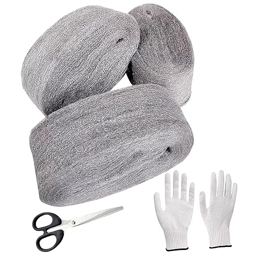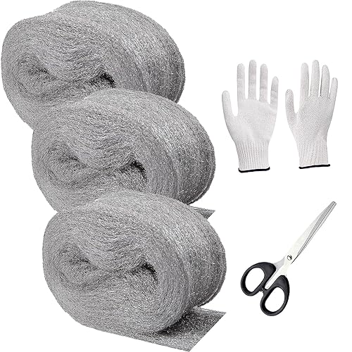 WANYI Stahlwolle 000 Edelstahlwolle Stahlwolle Gegen Mäuse mit Arbeitshandschuhen Schere für Reinigen, Polieren, Steel Wool Stahlwoll für Löcher, Wand Risse von Haus (3 Rollen 12m)