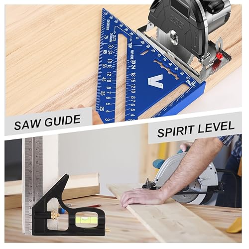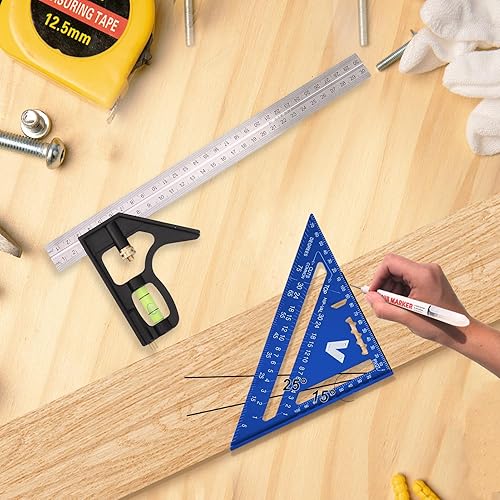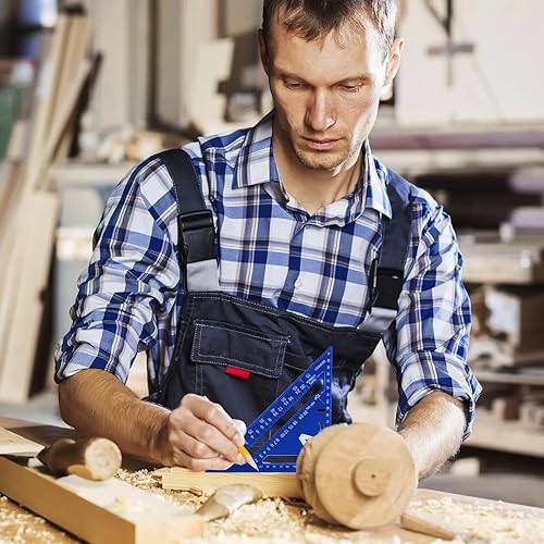 Zimmermannswinkel, Set aus 18 cm Dreieckslineal und 30 cm Kombinationen, inkl. Tieflochmarkierungen, hochpräzises Aluminium-Zimmermanns-Winkelmaß für Zimmerleute(Blue)