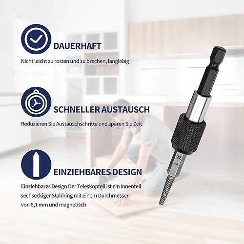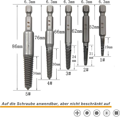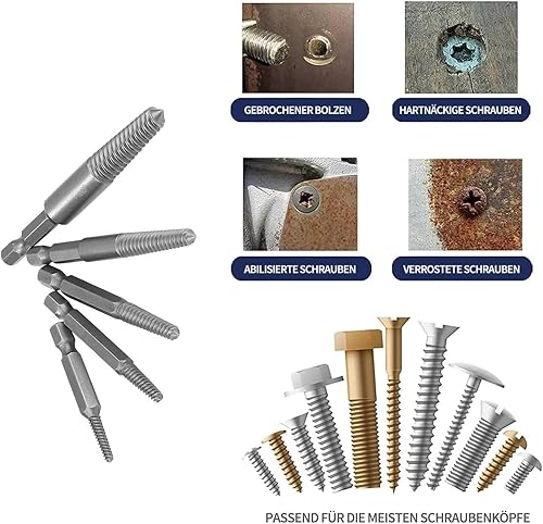 Schraubenausdreher Set, 6 Stück Linksausdreher Set Profi, Profi Ausdreher Set, Schraubenentferner, Ausdrehwerkzeug mit Stecknuss Adapter, Magnetischem Bithalter, für Beschädigte Schrauben, Rohre