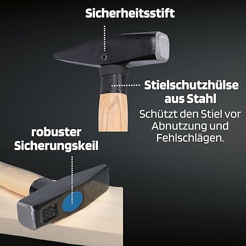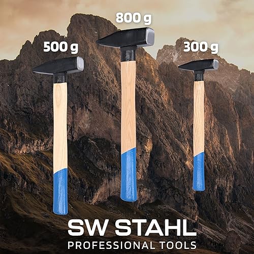 SW-Stahl 50930L Schlosshammer-Set mit Stielschutz 3-teilig I Werkzeughammer aus Hickoryholz I Hammer mit Kopfgewichten 300g - 500g - 800g I Schlosser Hammer Set Werkstatt
