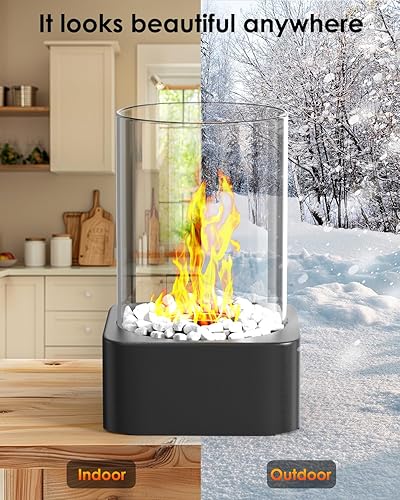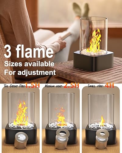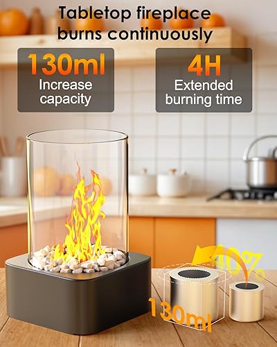 Bioethanol Tischkamin mit 2 Brennkammern für 4h Brenndauer,tischfeuer Indoor,Ethanol Kamin,Einstellbare Flamme,verdicktes Glas,für Wohnzimmer Balkon Deko,Erstellen Romantische Ambiente