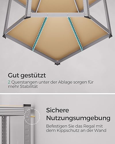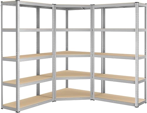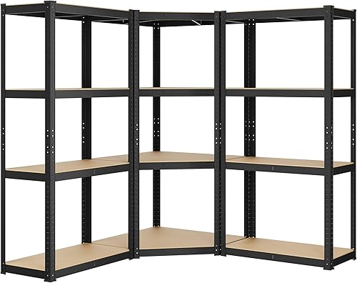 SONGMICS Eckregal-Set 5 Ebenen, Schwerlastregal, Metall, Lagerregal für Garage, Abstellraum, Kellerregal, bis 2625 kg belastbar, tintenschwarz-naturbeige GLR070B03