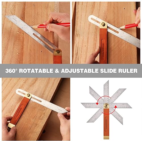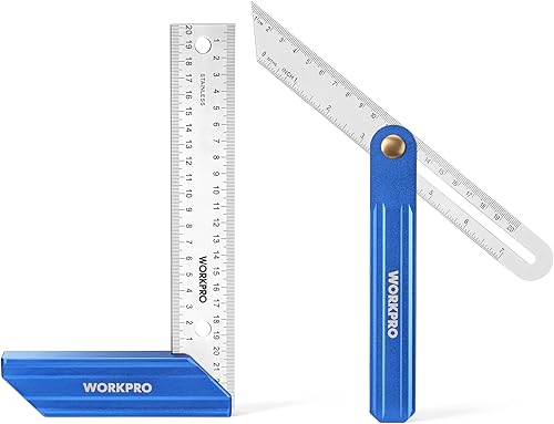 WORKPRO Anschlagwinkel 200mm & T-Schmiege 230mm Set, Verstellbarer Multifunktionswinkel Zimmermannswinkel Winkelschmiege aus Edelstahl, 2-teilig Winkel mit Aluminiumlegierungsgriff