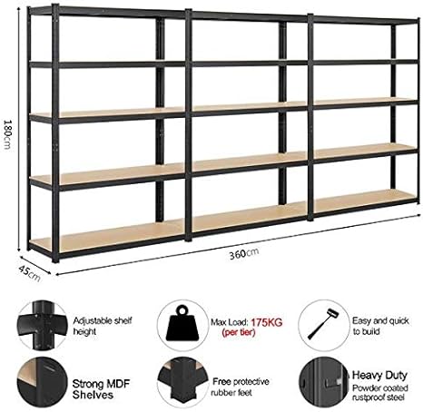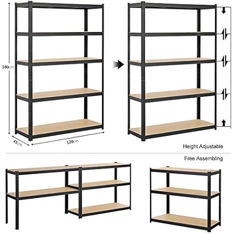Yaheetech Schwerlastregal 180 x 120 x 45 cm Lagerregal 5 Böden Metall Regal Max. Belastbarkeit : 875kg