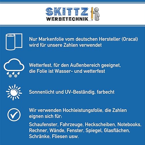 Leicht anzubringende Zahlen Aufkleber 4cm in schwarz glänzend - 101 HOCHWERTIGE KLEBEZAHLEN - selbstklebende Ziffern und Nummern 0-9 - Wasser und wetterfest ideal für den Außenbereich