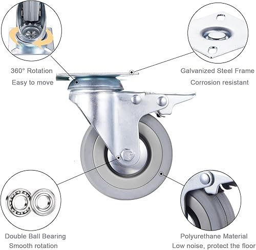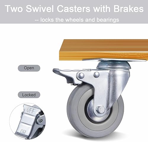 4 Stück Lenkrollen 75mm Möbelrollen Rollen mit Bremse Transportrollen bis 200kg Schwerlast Rollen 360° Drehbar Kein Geräusch(2 Bremsrollen, 2 Lenkrollen)