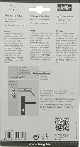 Burg-Wächter Sicherheits-Türkette mit Kindersicherung, 13 cm Länge, TK 64 SB, Vernickelt