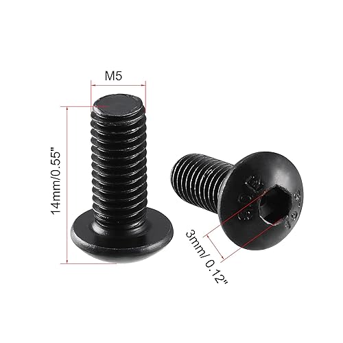 sourcing map M5x 12mm Knopfkopf Innensechskantschraube Schwarz 50Stk