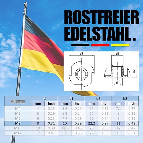 Rostfreier Edelstahl 10 Stück M8 8mm A2 Einschlagmuttern mit metrischem Innengewinde, perfekt als Einsatz für Holz und Kunststoff geeignet, indoor- und outdoor-tauglich