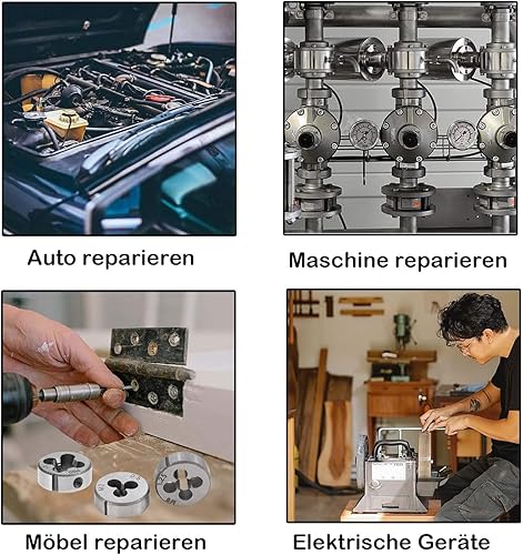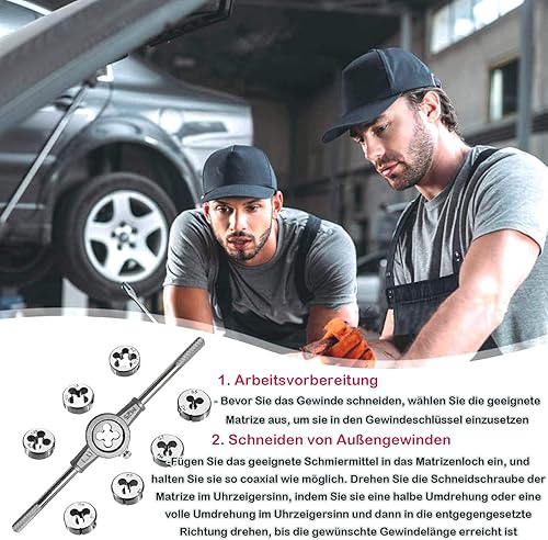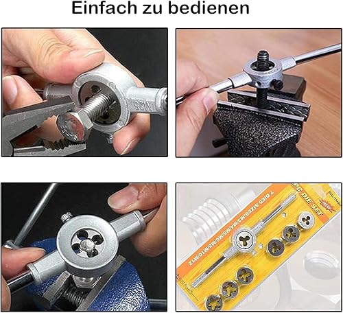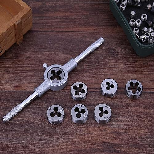 KEWAYO 8-teiliges Metrische Matrizen Set,Tragender Stahl Hand-Schraube Gewindeschneide Satz,Schraubenschlüssel Werkzeuge mit M3-M12 für Gewindeverarbeitung Manuelles Gewinde