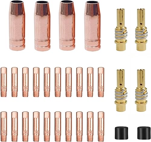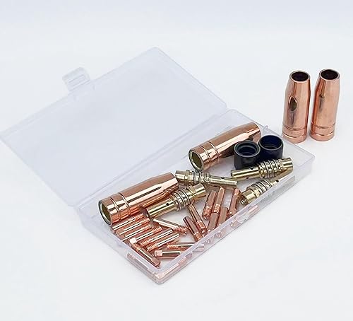 30 Stück Verschleißteile Set, Schutzgasschweißgerät Zubehör, Schweißzubehör passend MB15 15AK, 4 x Gasdüsen, 20 x Stromdüse M6 0,8mm, 4 x Düsenstock, 2 x Isolatoren (0,8mm)