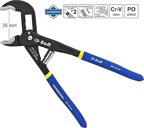 S&R Automatische Wasserpumpenzange mit patentiertem Schnellspannmechanismus 240x35mm, CR-V, doppelt ummantelte Griffe