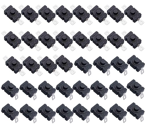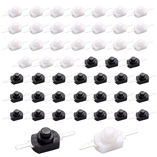 HUAZIZ 50 Stücke DC 30V 1A Self-Lock Druckknopfschalter, Verriegelung Druckknopfschalter Ein Aus Aus für Taschenlampe Taschenlampe Lampe Wandsteckdose, Weiß und Schwarz