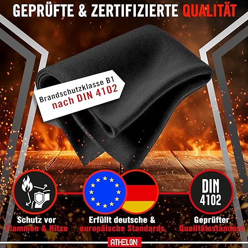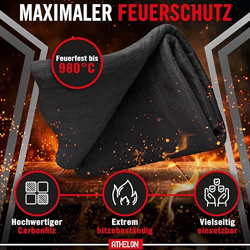 ATHELON® Feuerfeste Unterlage [1x1 m] - extra Dicke Hitzeschutzmatte aus Carbonfilz [feuerfest bis 980°C] - Brandschutzmatte oder Grillunterlage für Outdoor & Indoor [flexibel zuschneidbar]