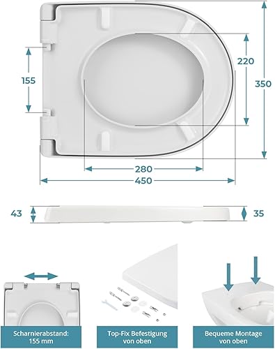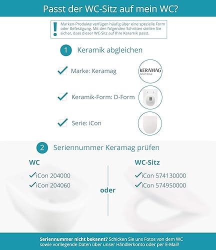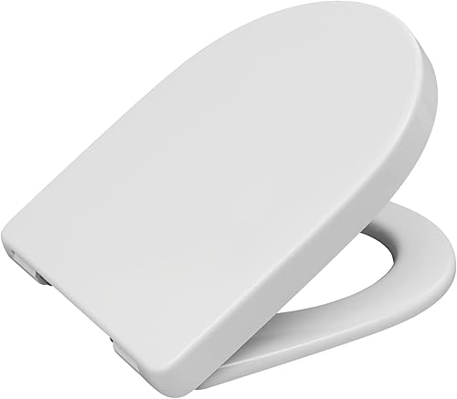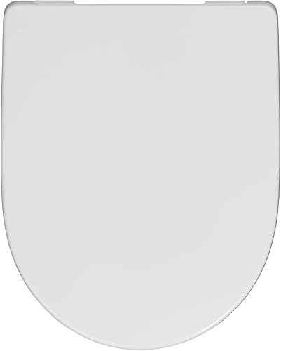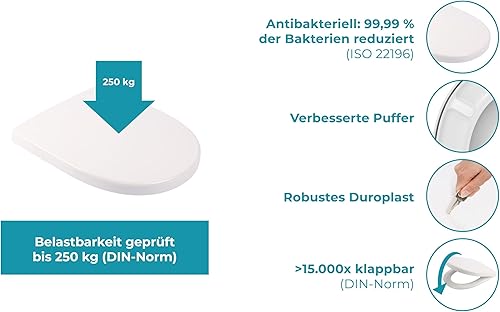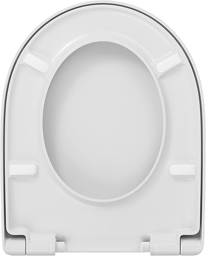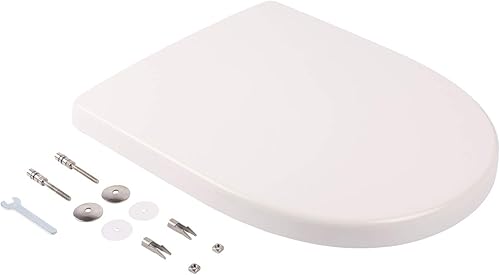 Calmwaters® Antibakterieller WC Sitz für Keramag Renova Nr. 1, Toilettensitz mit Absenkautomatik, Duroplast Toilettendeckel, überlappende D-Form, Edelstahlscharnier, Klodeckel, Weiß, 26ZZ3550