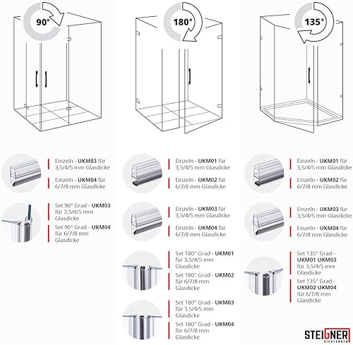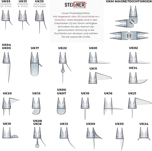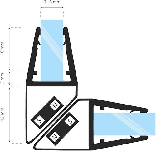 STEIGNER Magnetduschdichtung SET, 201cm, Glasstärke 6/7/ 8mm, Ersatzdichtung für 90 Grad Duschtür, UKM04, 2 Stück