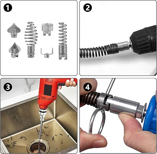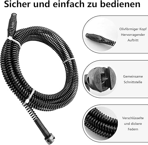 TECKZOON Rohrreinigungsspirale 2 * 3-Meters, Spiraldurchmesser 12 mm mit Elektrischen und Manuellen Adaptern, Multifunktionale Rohrreinigungswelle Effizientes Rohrreiniger für Küche Bad