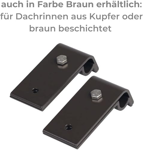 Dachrinnenhalter für Anlegeleiter, braun, 2 teiliges Klemmenset aus Aluminium für alle halbrunden und kastenförmigen Rinnen von Ø 16-22mm