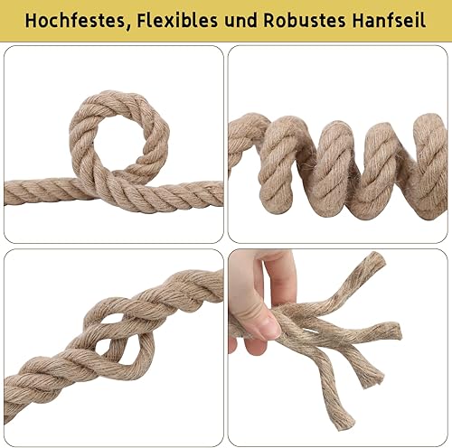 Meidansini Juteseil, Natürliches Hanfseil, DIY Verdrehtes Manilaseil für Handwerk, Gartenarbeit, Klettern, Hängematte, Nautisch, Tauziehen, Geländer, Innen- und Außendekoration (12mm x 10M)