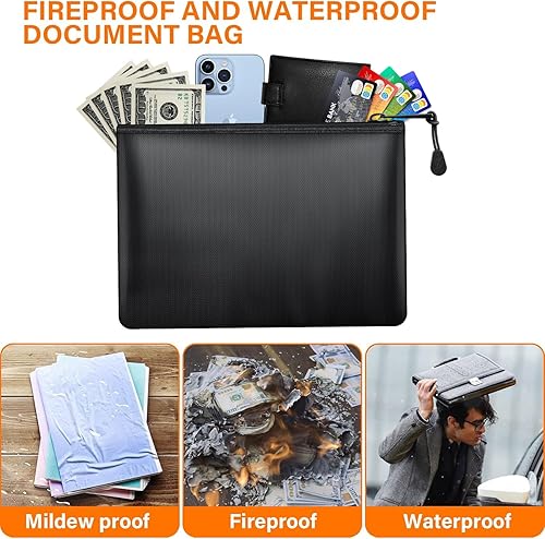 Feuerfester Geldbeutel mit Reißverschluss (20,5 x 13,5 cm), wasserdichter, feuerfester Geldbeutel zum Schutz von Bargeld, Schmuck, Reisepässen und wichtigen Papieren
