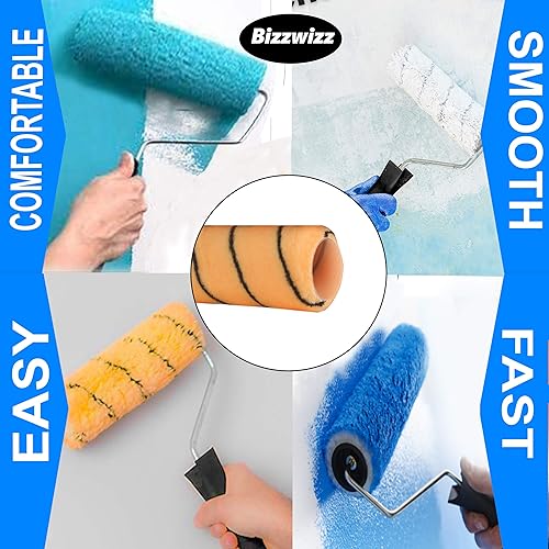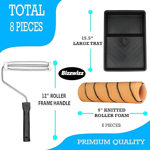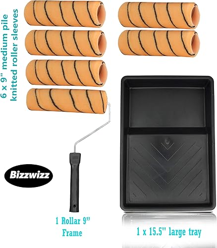 Bizwizz 229 mm Tigerstreifen-Farbroller-Set mit Tablett und 6 Hüllen, Emulsionsroller-Set, Farbroller und Tablett für Wandfarbe, Performance-Emulsions-Roller-Set (8-teiliges Farbroller-Set)