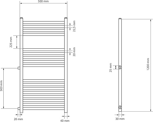 LuxeBath Renovierungsheizkörper Austausch 500x1200 mm Weiß, Badheizkörper gerade mit Seitenanschluss, Nabenabstand 500 mm, Heizkörper Handtuchwärmer Handtuchtrockner Handtuchheizkörper Handtuchheizung