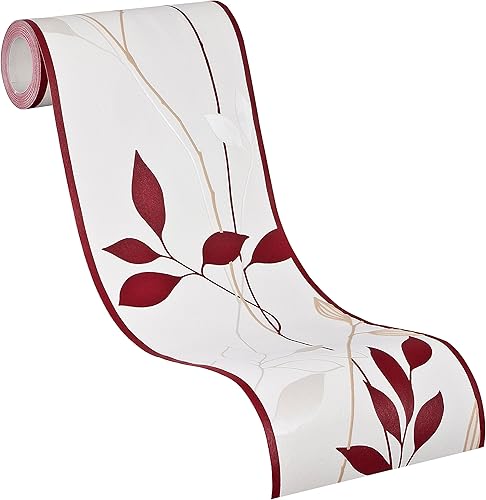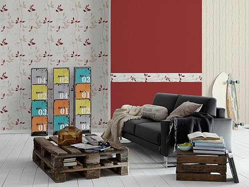 A.S. Création Bordüre - Vliesbordüre mit wundervollen Blumen in Rot und Creme - auf 5,00 m x 0,17 m je Rolle