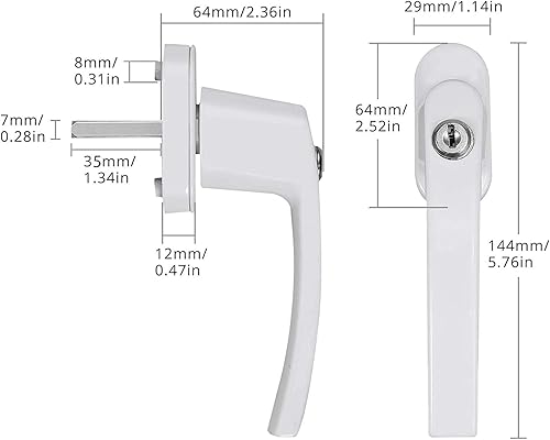 CAMWAY Fenstergriffe, 2 Stück abschließbare Fenstergriffe, mit Schloss in Stiftlänge 35mm, Kindersicherung Fenstersicherung für Kinder Diebe, für alle gängigen Fenster und Balkontüren