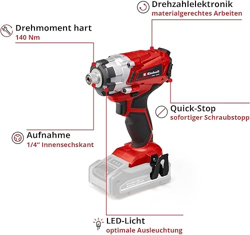Einhell Akku-Schlagschrauber TE-CI 18/1 Li-Solo Power X-Change (Li-Ion, 18V, 0-2300 min-1, max. Drehmoment hart 140 Nm, Drehzahlregelelektronik, ohne Akku und Ladegerät)