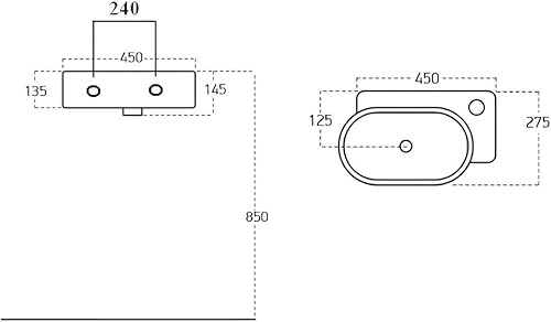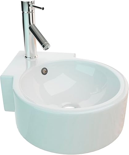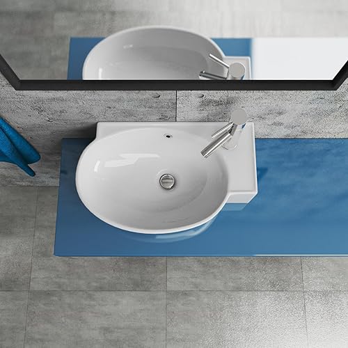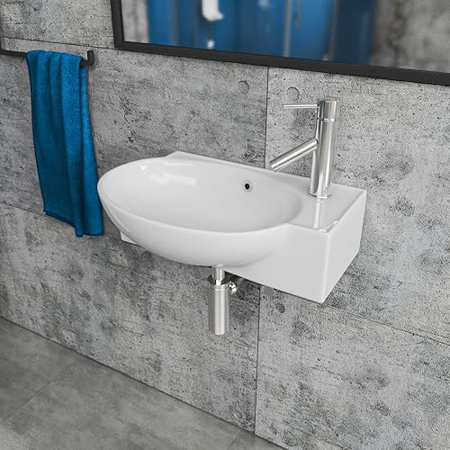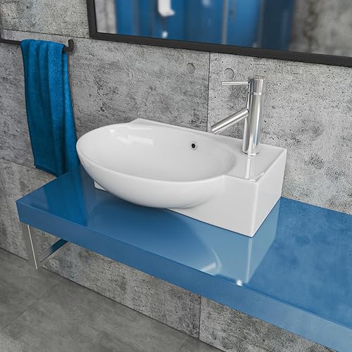 Handwaschbecken Aufsatzwaschbecken aus Keramik, 45 cm Kompaktes Waschbecken für Gäste WC & kleines Badezimmer, auch für Unterschränke geeignet | Edles Design in Weiß | BxTxH: 45,5x28x15,5cm