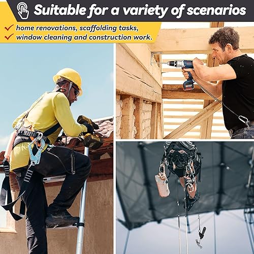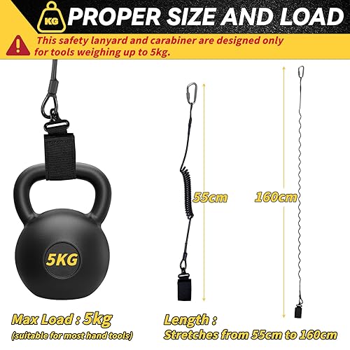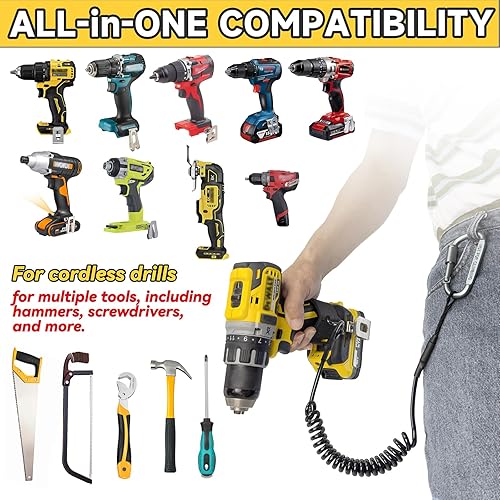 otuiaim Ausziehbares Werkzeugband für Akkubohrer mit Karabinerhaken & Klettverschluss, 160 cm Anti-Fall Sicherungsband für Elektrowerkzeuge, 5 KG Tragfähigkeit Sicherheitsleine
