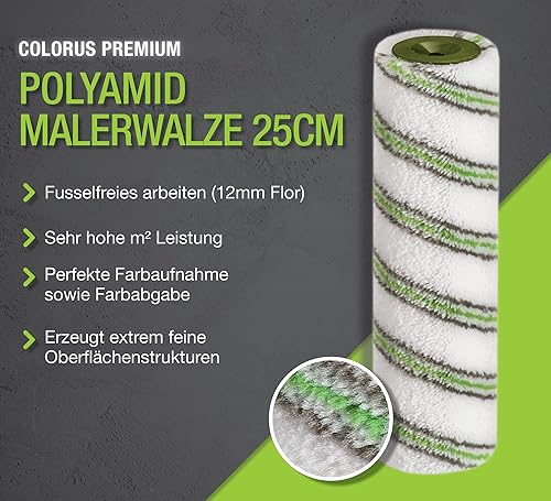 Colorus Profi Farbroller Set Wandfarbe 25cm | Malerrolle groß Polyamid | Farbroller Wandfarbe und Decke | Paint Roller mit Malerroller Bügel | Farbwalze 25 cm Maler Set streichen Zubehör
