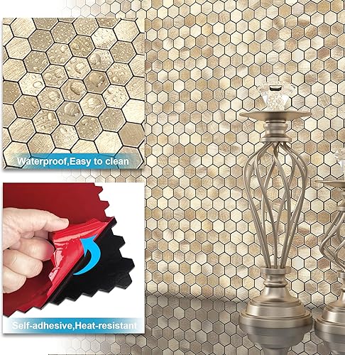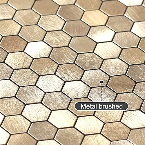BeNice Fliesenaufkleber Bad Selbstklebende Fliesen,Mosaikfliesen Küche Kleine Fliesen Metall(10STÜCKE Braun)