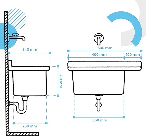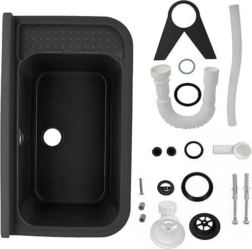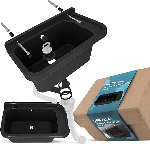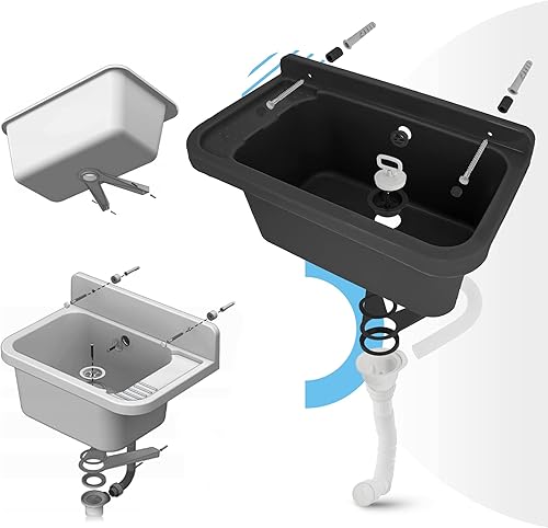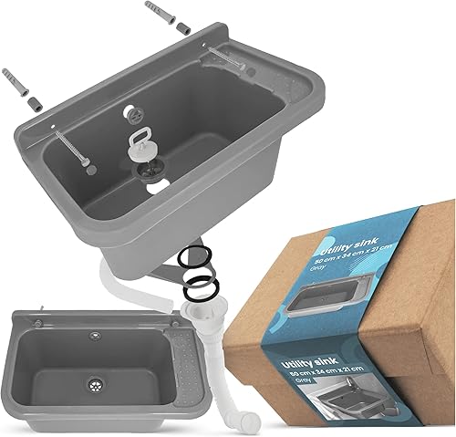 Waschbecken mit Regal 50 x 34 x 21 cm Grau | Spülbecken Ausgussbecken Waschtrog Becken Ablage Überlauf Gewerbe Waschraum Garten Garage Keller Werkstatt Waschküche Außenwaschbecken Gartenwaschbecken