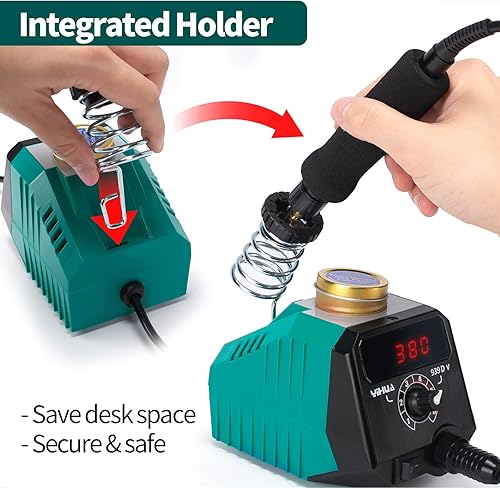 YIHUA 939D-VI Doppelstift brandmalerei brennpeter für holz mit Digitalanzeige mit 20 Drahtspitzen, abnehmbarem holzbrennstift, 2 Holzstücken als brandmalerei holzbrennstift und Brenneisen für Holz