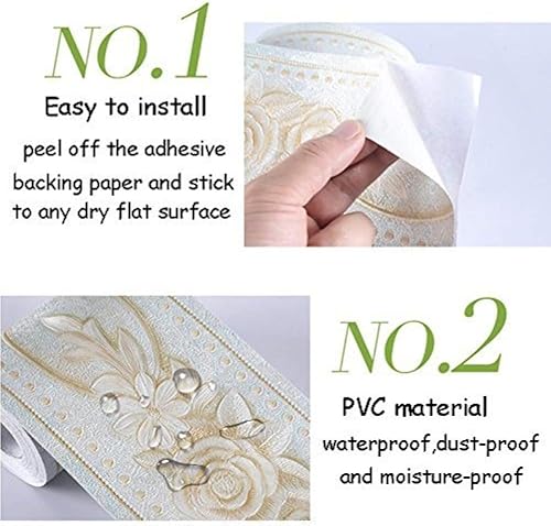 Wasserdichte Tapetenbordüre mit Blumenmuster, 3D-Muster, Wandaufkleber, abnehmbar, selbstklebend, für Küche und Badezimmer, 10,6 x 500 cm (Rosa)