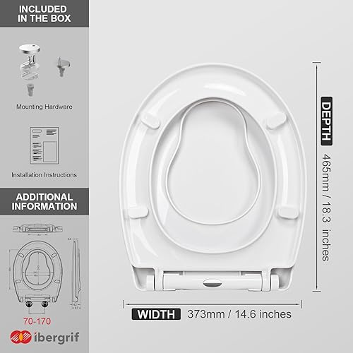 Ibergrif Toilettendeckel mit Absenkautomatik O WC Sitz Einfache Montage und Sauber,Klodeckel Quick-Release-Funktion,Antibakterielle,Passend für die Meiste Toilette,Belastbarkeit von 150kg,Weiß,M41002