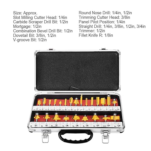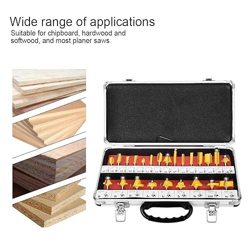 Cocoarm 24tlg Fräser Set Holzfräser 1 / 4in Schaft Router Bit Set Holzbearbeitungswerkzeug Kit Tischlerzubehör
