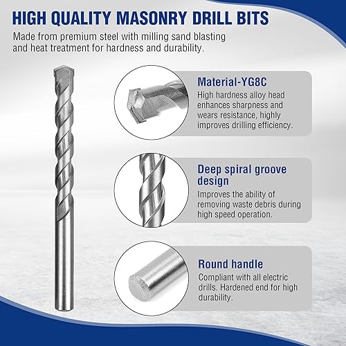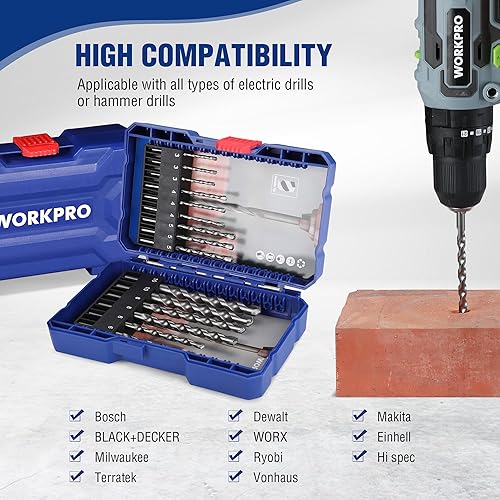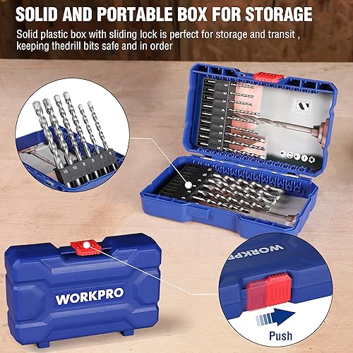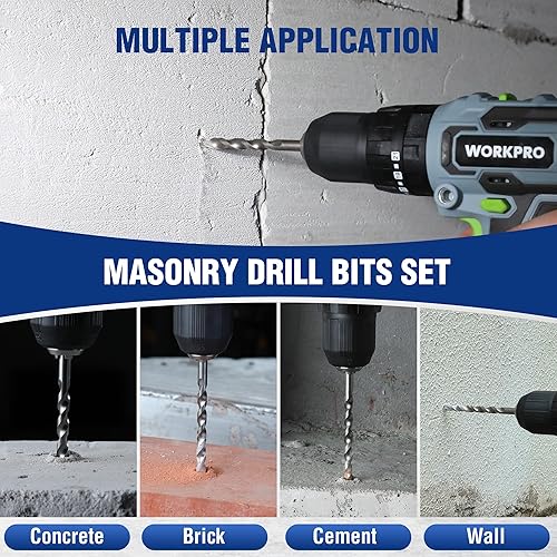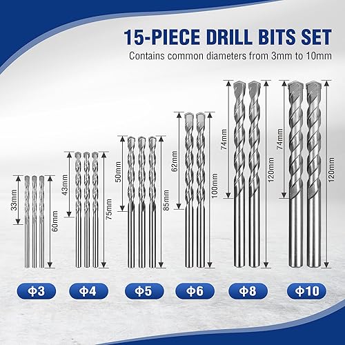 WORKPRO 15tlg. Steinbohrer Set mit Aufbewahrungskoffer, 3, 4, 5, 6, 8, 10mm Durchmesser Bohrerset, Werkzeug zum Bohren in Stein & Mauerwerk