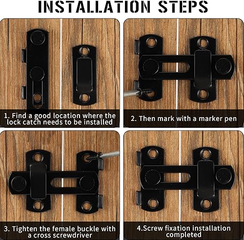 Schiebeschloss Türriegel, 2 Stück Edelstahl Riegelschloss Schwarz Flip Latch mit Fester Schraube Torriegel Schlossriegel Schieberiegel für Haus Hof Garten Scheunentor