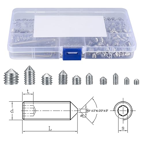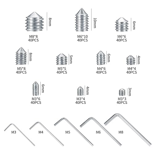 400 Stück Madenschrauben Konus-Spitz Schrauben Set, Edelstahl Innensechskantschrauben, Gewindeschrauben, M3 M4 M5 M6 M8 Gewindehülse