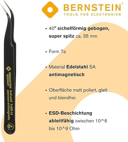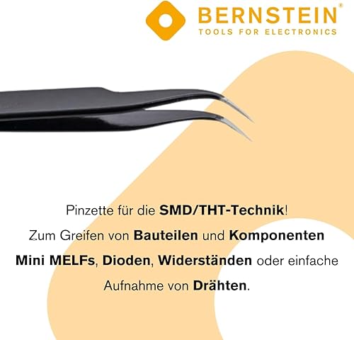 BERNSTEIN Esd Smd Pinzette 120 Mm Form 7a Edelstahl Winkel 40° Ableitfähig | Bestückungspinzette, SMD/THT, Präzisionspinzette