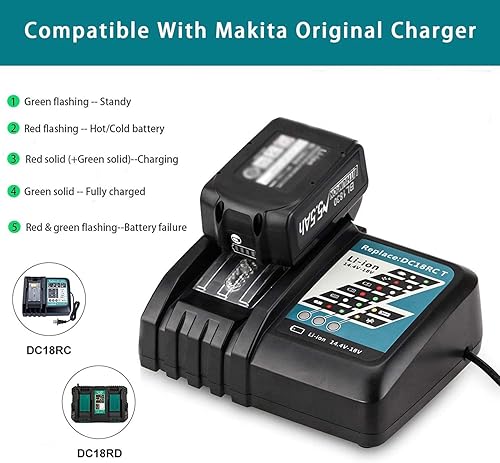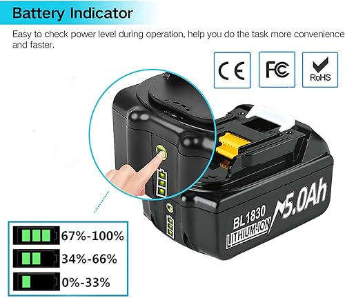 2X 18V 5,0Ah Ersatzakku für Makita Akku Kompatibel mit Makita BL1850B BL1830 BL1850 BL1860 BL1860B BL1830B BL1840 BL1845 BL1820 194205-3 LXT-400 Werkzeugakku
