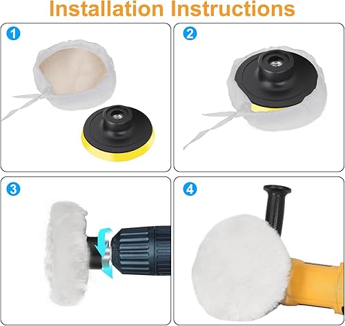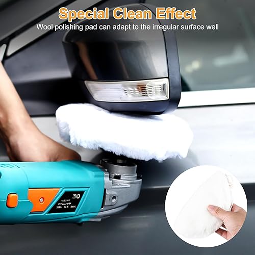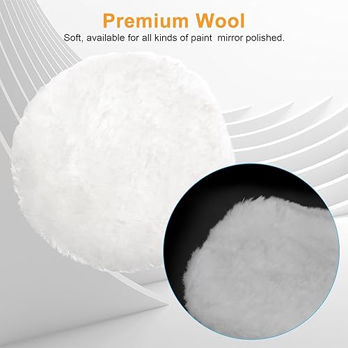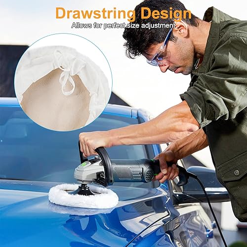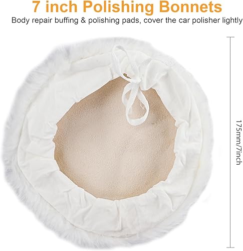 Linkstyle 6 Stück 7 Zoll Polierpads, Polierhaube 180mm Buffing Lammwolle Polieraufsatz Akkuschrauber Pad, Kordelzug-Design Polieraufsatz für Auto, Möbel, Glas