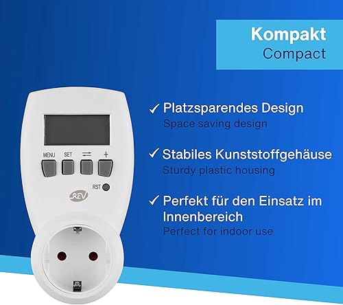 REV Stromzähler – Ausgezeichnet von Stiftung Warentest mit Note 1,7 - messen Sie Ihren Stromverbrauch, Stromzähler für Steckdose, Stromzählgerät, weiss